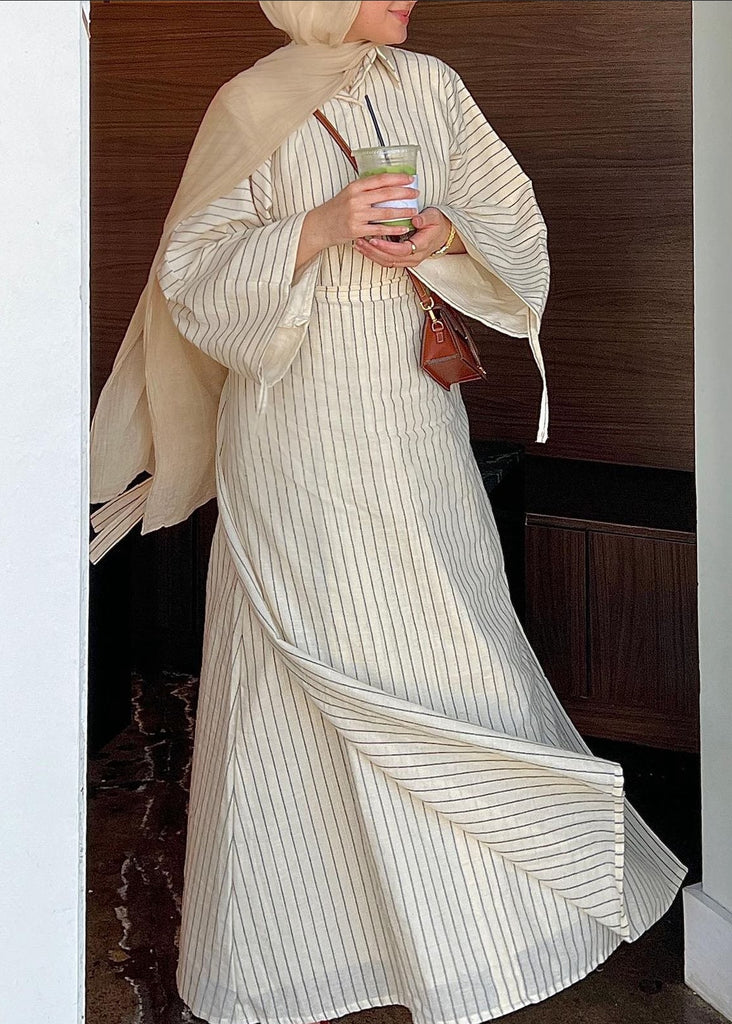 Elevate your summer wardrobe with Mimi —Perfect for poolside lounging or vibrant city explorations, this versatile set is your go-to for resort trips, picnics, and unforgettable summer outings. A two-piece shirt dress featuring a trendy striped pattern, with a stylish wrap that can be tied in various ways, allowing you to customize your look. Embrace summer sophistication with the Mimi and turn heads wherever you go.