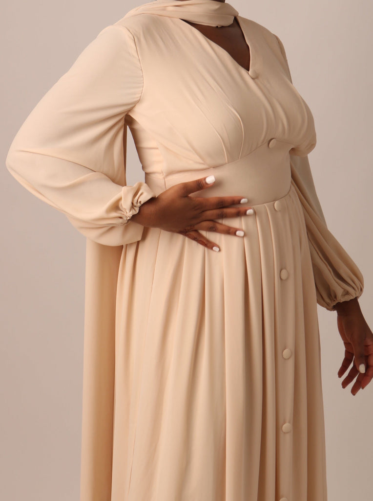 Discover the beauty of Kira —unleash your inner girly girl with this stunning faux-corset dress, featuring a feminine v neckline and delightful bubble sleeves adorned with faux button-down details. Perfect for picnics and summer outings, this lightweight and airy dress effortlessly combines elegance with comfort, capturing the essence of Miss FM style. Embrace your femininity and make a bold statement with this enchanting piece.